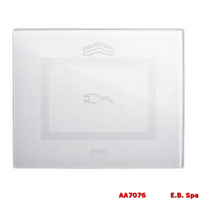 Placca serie AVE TOUCH in VETRO per scatola rettangolare – colore Bianco finitura lucida – A scivolamento per copertura 3 moduli Sistema 44 – simbolo ‘spina’ – supporto da utilizzare 44ATC03GSL, 44ATC03ALS o 44ATC03B – dimensioni 120 x 98 mm